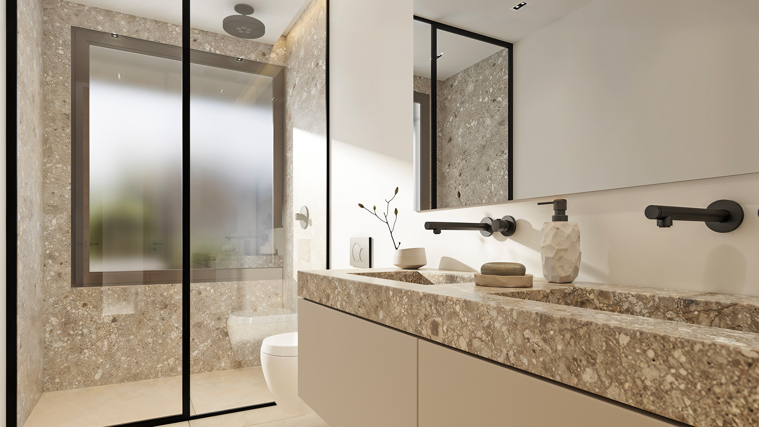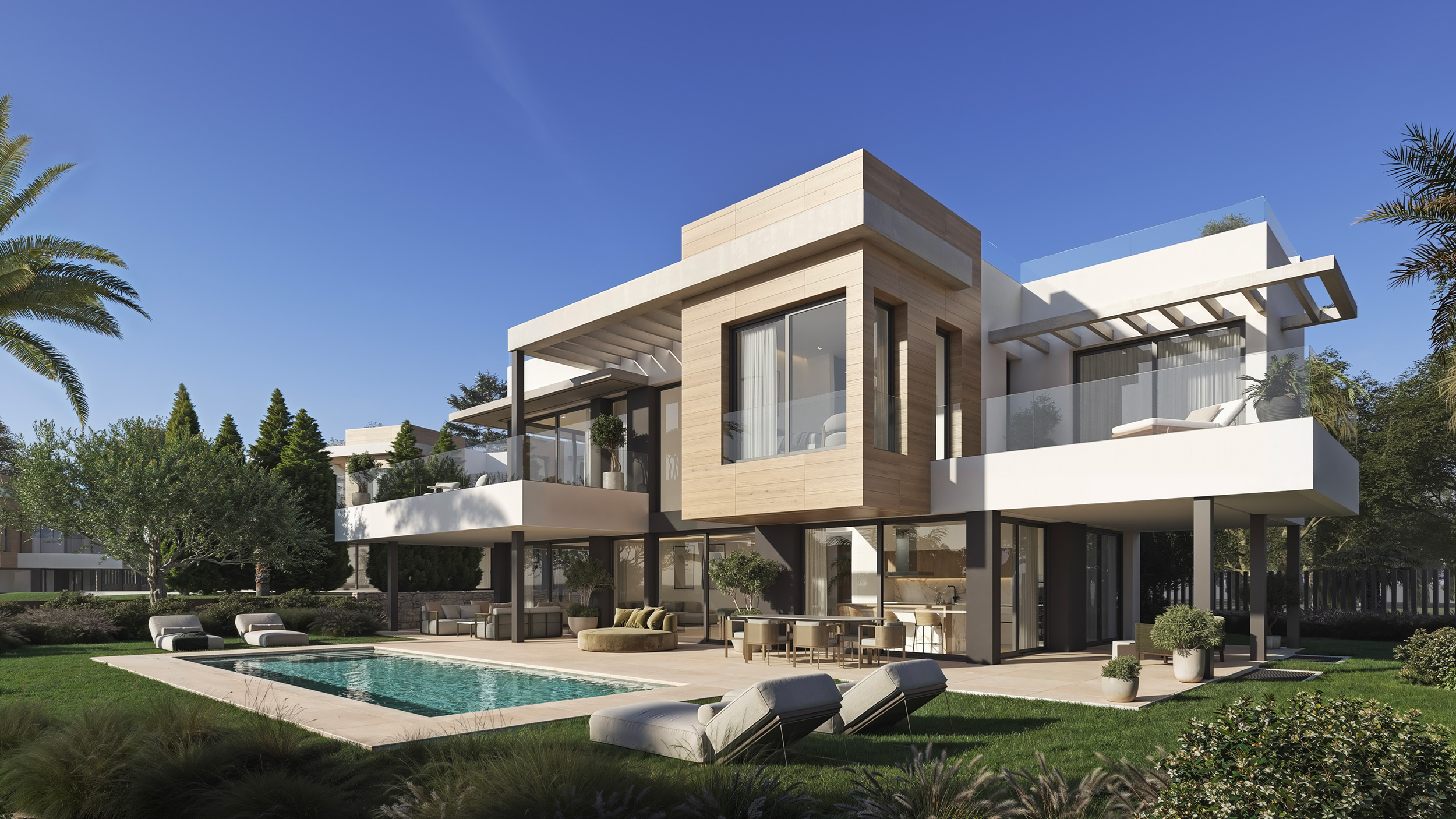 Las extensas terrazas invitan a disfrutar de la vida al aire libre en todas sus facetas: desde íntimas áreas de relax hasta elegantes espacios para encuentros sociales. Todo fluye con naturalidad y sofisticación. Aquí, el exterior deja de ser un complemento para convertirse en uno de los grandes protagonistas de la vivienda.
